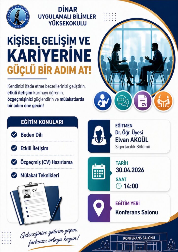📍 EĞİTİM YERİ Dinar Uygulamalı Bilimler Yüksekokulu Konferans Salonu